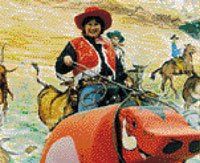 bulls, robotic hog lassoing, fast draw and other laser shooting